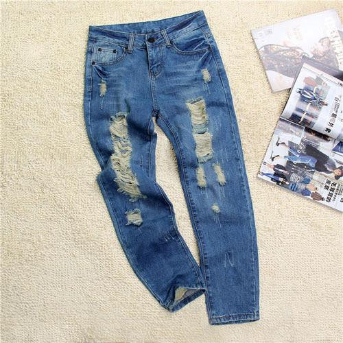 Whether you're looking to enhance your casual collection or need a standout piece for a weekend outing, our Women's ripped jeans Fashion boyfriend jeans for woman Loose hole denim pants are the perfect choice. With a mid-waist design, zipper fly closure, and full-length style, these jeans are as functional as they are fashionable.