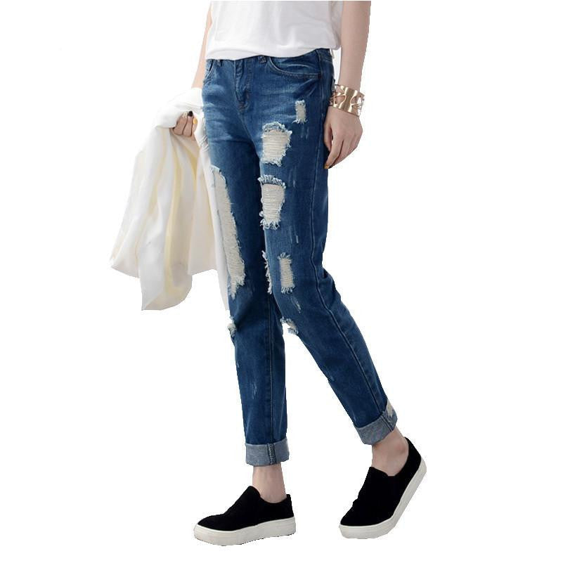 Step into the season with confidence and flair in our Women's ripped jeans Fashion boyfriend jeans for woman Loose hole denim pants—your new go-to for effortless style!