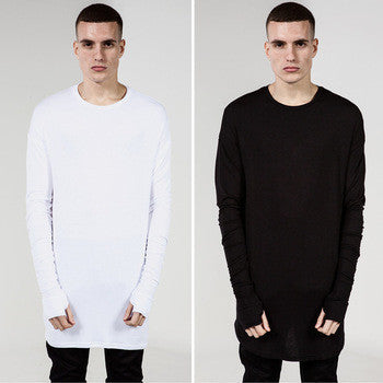 Hip-hop style wool T-shirt for men, long in sleeves and also split at the side to give men more style and swag.