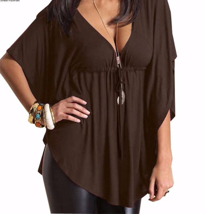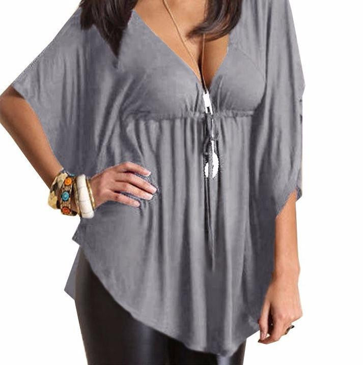 Introducing the ultimate wardrobe essential: the Women Casual Loose V-Neck Batwing Sleeve Tee Tops Ladies Solid Blouses Shirt Plus Size. Designed for fashion-forward ladies, this top combines comfort and style, making it perfect for any casual outing. Feel the soft and breathable fabric made from high-quality cotton and polyester, ensuring you stay comfortable all day long.