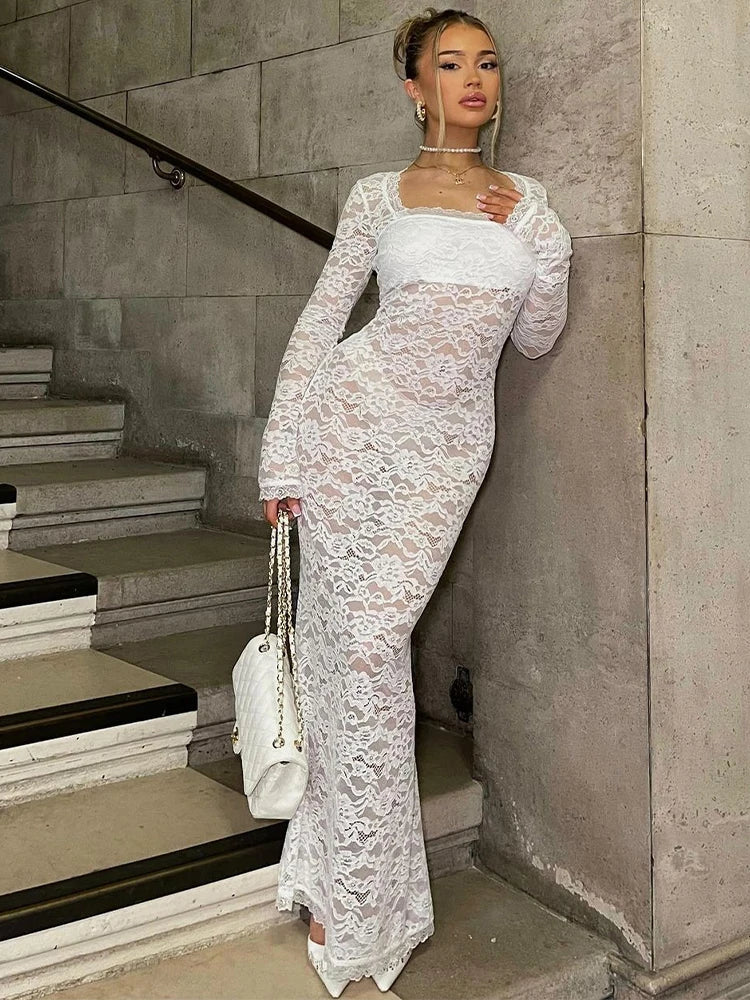 Whether you're hitting the dance floor or enjoying a festive gathering, the Floral Print Square Collar Long Sleeve Sexy Slim Sheer See Through Maxi Dress is your go-to choice for making a fashion statement. Embrace your inner fashionista and elevate your wardrobe with this must-have piece!