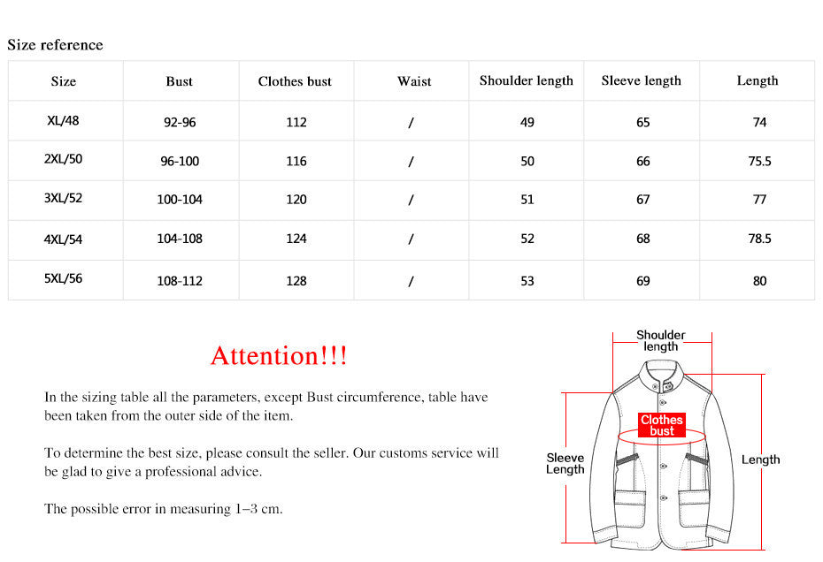 Crafted for convenience, this jacket is easy to maintain and is available in large sizes to accommodate a variety of body types. For more detailed sizing information, please feel free to contact us.