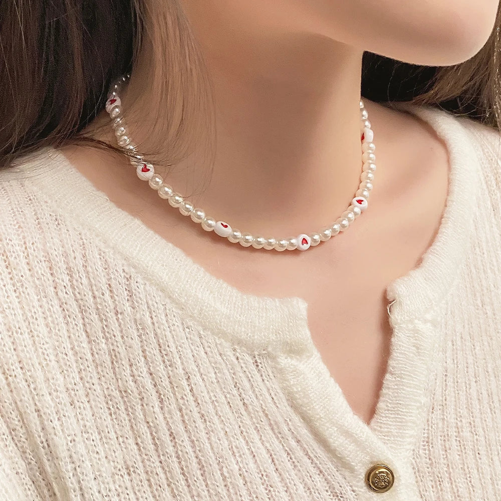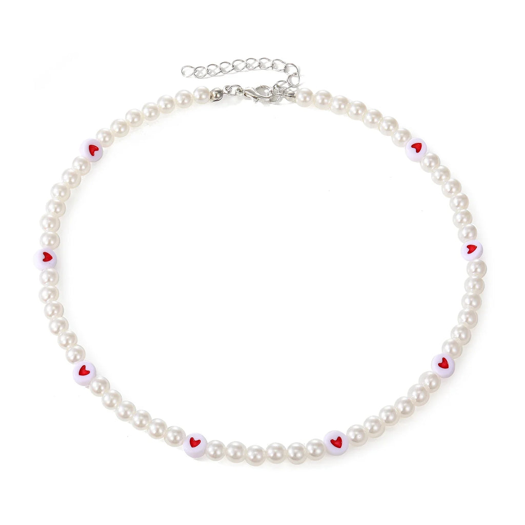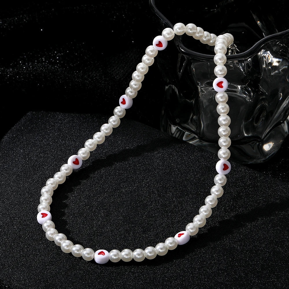 Add a touch of vintage charm to your outfit with our Y2K Artificial Pearls Beads Necklace. The red heart pendant adds a cute love element, perfect for women and girls. This necklace is a fashion statement that will make you stand out!