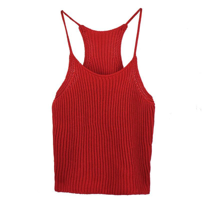 7: Candy Colors O-Neck Knitted Spaghetti Strap Short Tank
