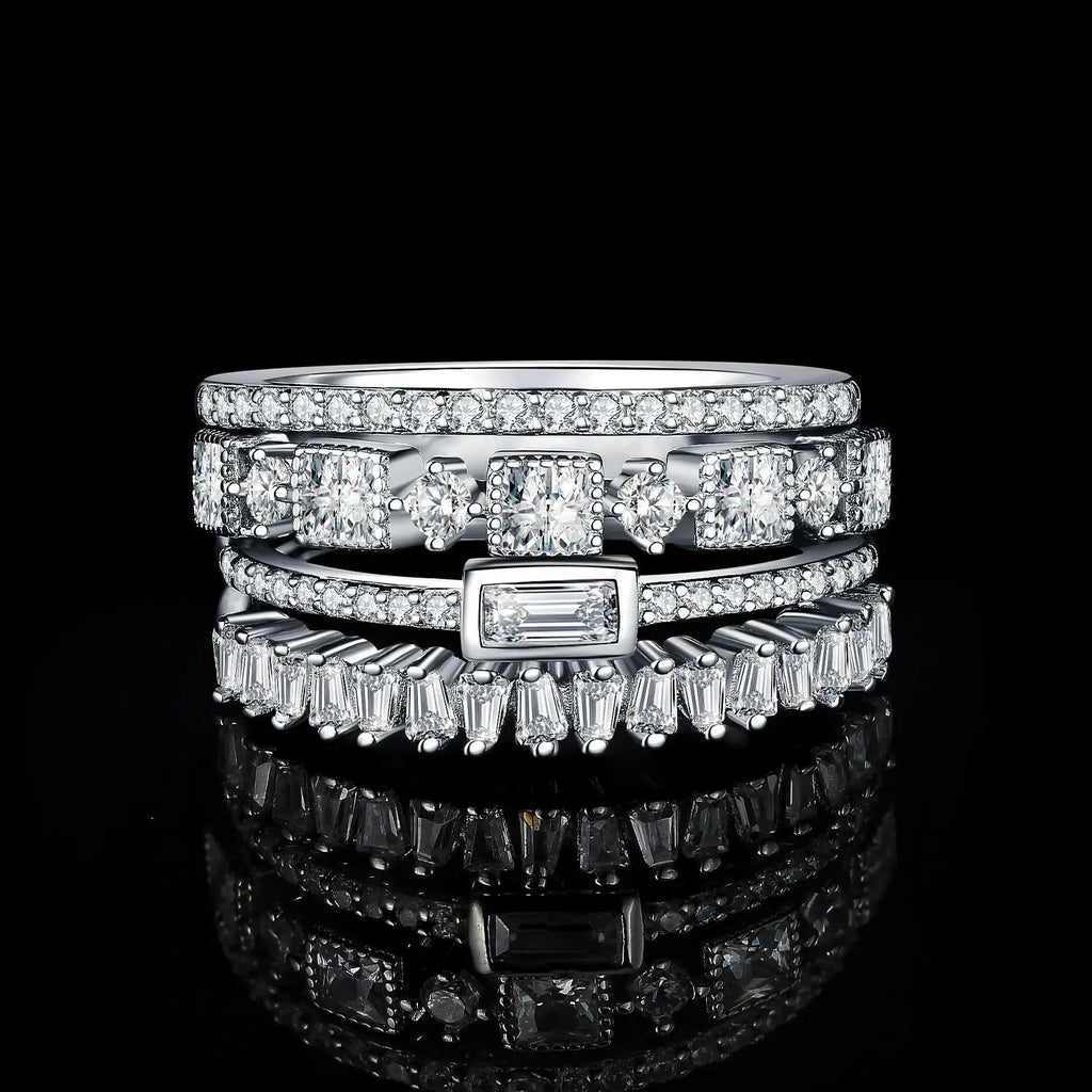 Elevate your jewelry collection today with the 4 Pcs 925 Sterling Silver Wedding Band Solitaire Eternity Stacking Rings for Women 1ct AAAAA CZ Fashion Jewelry. Experience the blend of elegance, style, and durability that makes these rings a must-have for every woman.