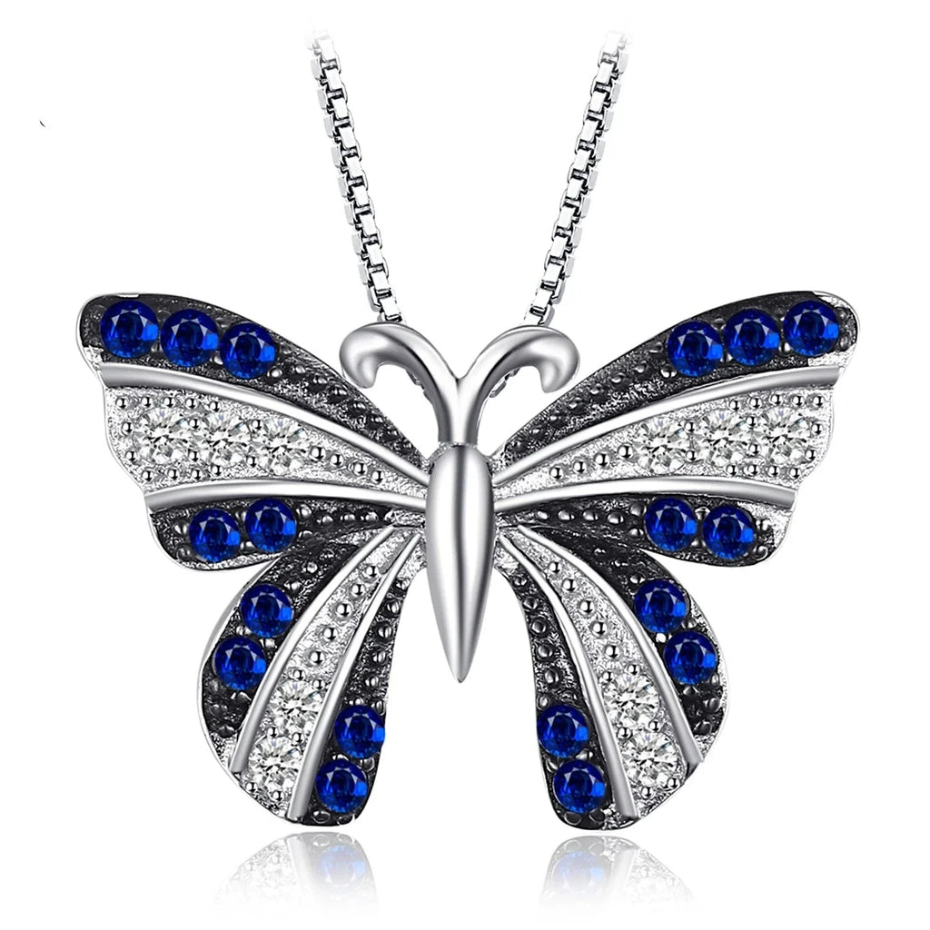 Elevate your style with our Butterfly Created Blue Spinel 925 Sterling Silver Pendant Necklace! This elegant necklace features a stunning butterfly design and is made of high-quality 925 sterling silver for long-lasting wear. Perfect for any occasion, this necklace is a must-have for trendy and fashionable women. (46)