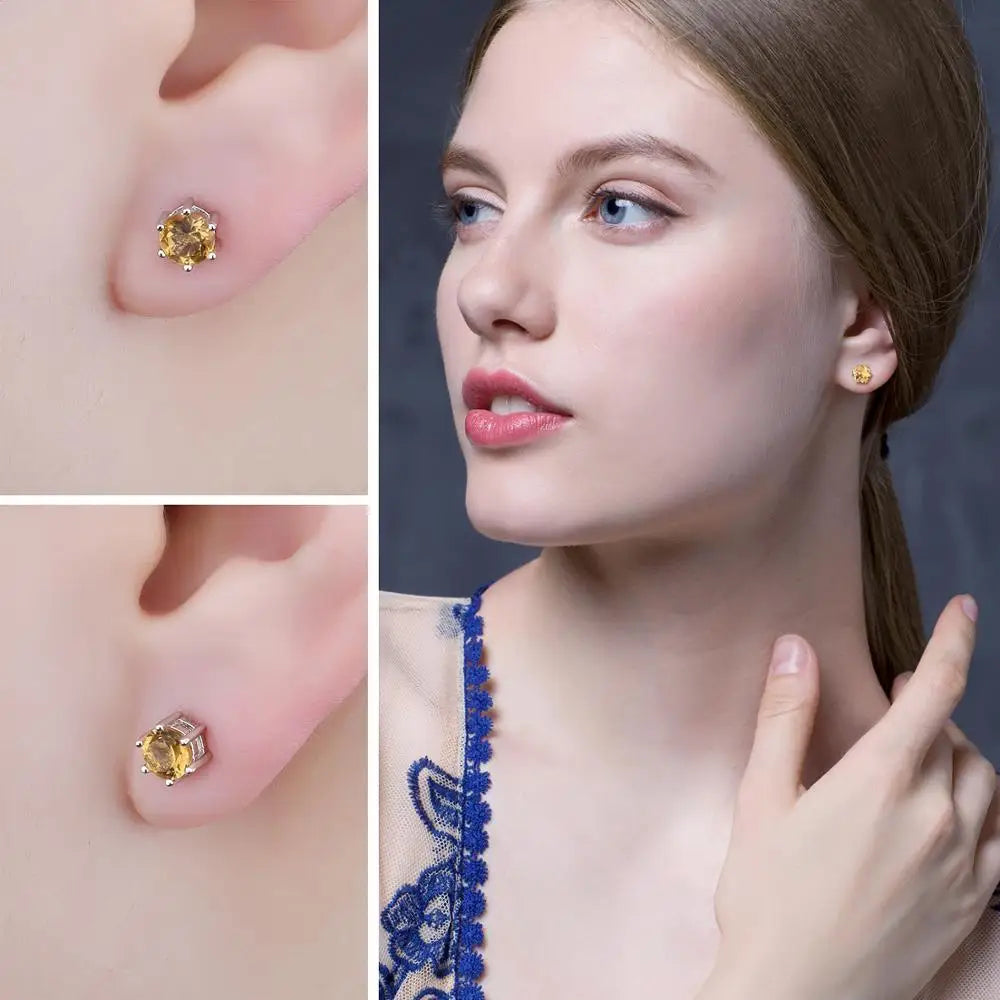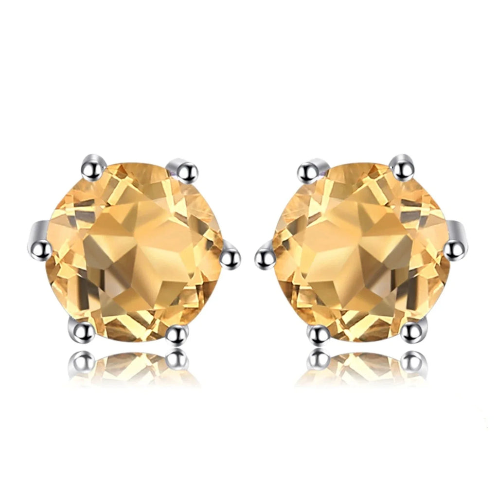 Enhance your jewelry collection with our Round Natural Yellow Citrine 925 Sterling Silver Stud Earrings for Women Statement Fashion Gemstone Jewelry Gift and let your style shine bright!