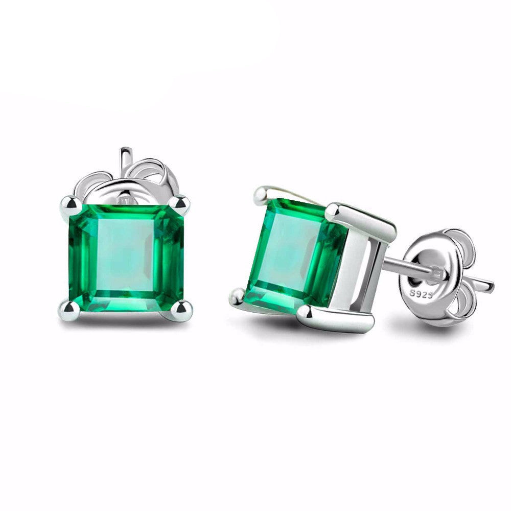 A Russian nano emerald of 0.6ct square silver stud earrings jewellery for women of high fashion taste. Adds to your elegant look when used.