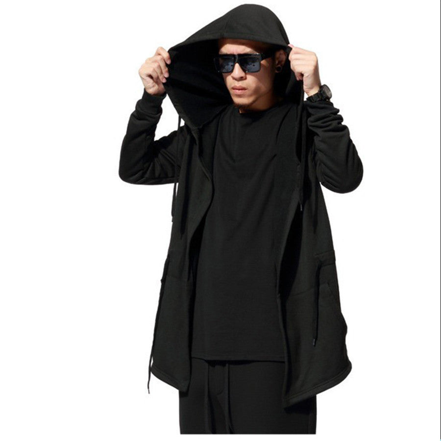 Don't miss out on this unique piece that combines style, comfort, and practicality. Add the Fashion Black Cloak Hooded Male Streetwear Hip Hop Long Hoodies Clothing Men Outerwear Cool Man to your wardrobe today!