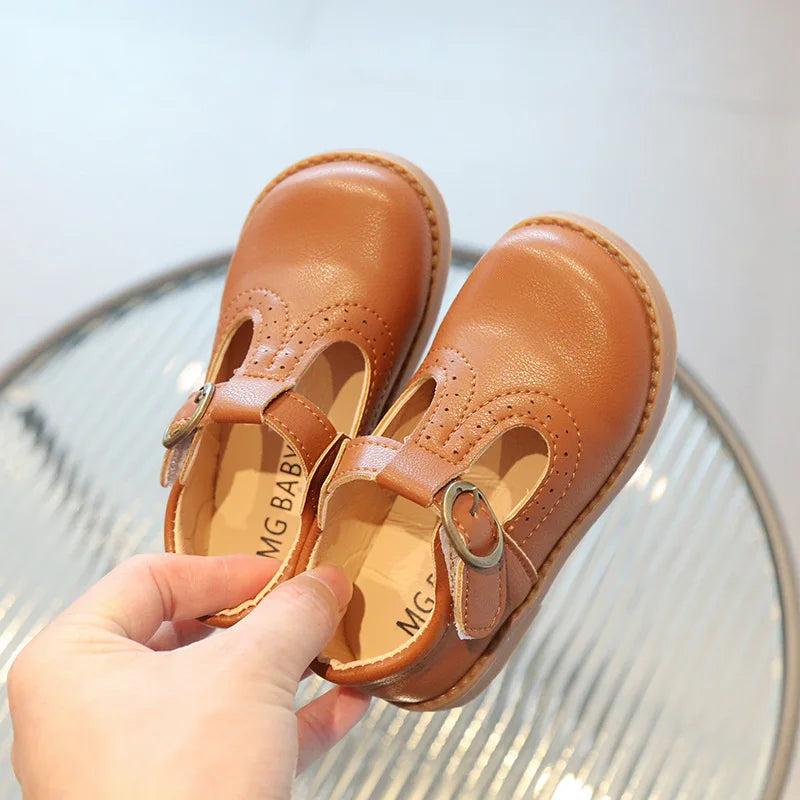 Let your child step out in style and comfort this season with our Kids T Strap Leather Shoes Girls Princess Shoes Boys Breathable Flats Mary Janes Black Brown Child Baby Toddlers. Order now and watch them shine!