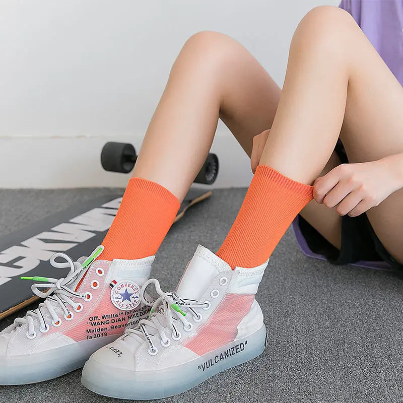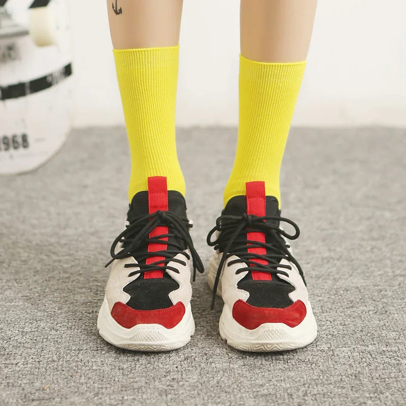 Elevate your footwear collection with our Women Crew Socks Korean Fashion Retro Style Casual Street Sports Harajuku Solid Color. These stylish crew socks seamlessly blend comfort and contemporary fashion, making them an essential accessory for any wardrobe. Designed to complement your casual streetwear or sporty ensembles, these socks make a statement while ensuring you stay comfortable throughout the day.