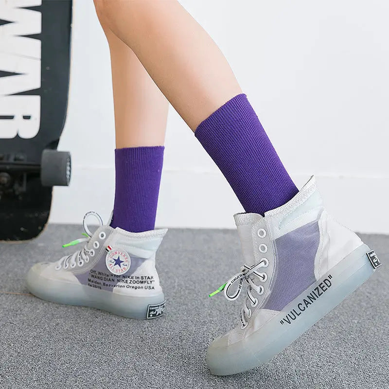 Whether you're dressing up for a casual outing, heading to the gym, or just lounging at home, our Women Crew Socks Korean Fashion Retro Style Casual Street Sports Harajuku Solid Color will enhance your style and comfort. Don’t miss out on this fashionable essential—grab your pair today!