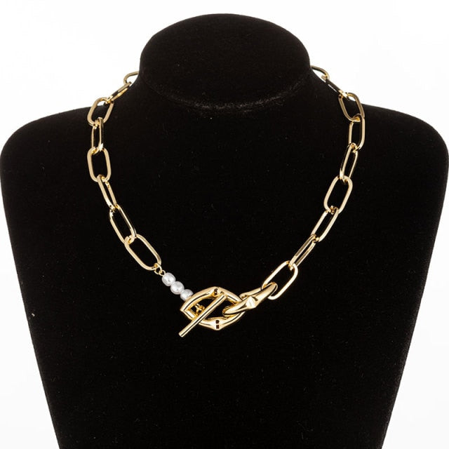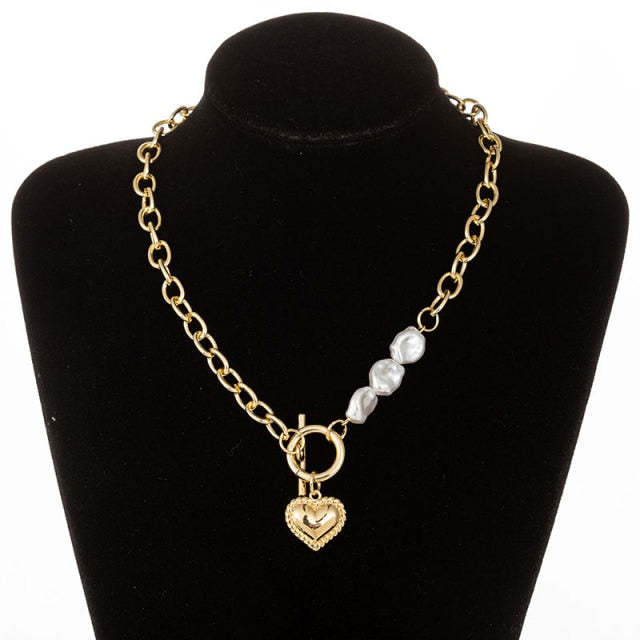 Embrace your unique style with this stunning piece of punk jewelry that celebrates love and individuality. Elevate your accessory game with the Vintage Baroque Irregular Pearl Lock Chains Necklace Geometric Aangel Pendant Love Necklaces for Women Punk Jewelry today!