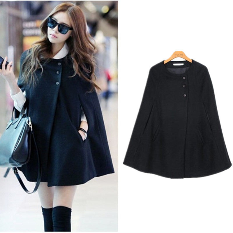 Feel warm on cold and windy Days In This Woman's cape black batwing wool oversized poncho, this beautiful outwear jacket can be yours with its single-breasted front and long sleeve, this coat will keep you warm on cold days.
