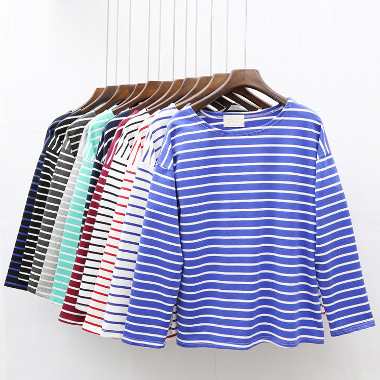 Upgrade your wardrobe with our Ladies Casual Shirt Women's Red White Striped 3/4 sleeve Tops For Woman Crew Neck Bottoming Tee Shirt 11 Colors and experience the perfect combination of style and comfort!