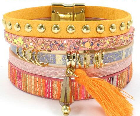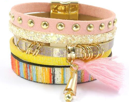 Introducing our stunning leather bracelet 6 color bracelets winter charm bracelets Bohemian bracelets&bangles for women Christmas gift B1627. This beautifully crafted bracelet is designed to elevate any outfit, making it the perfect accessory for the fashion-forward woman. Available in six vibrant colors, it complements your style while adding a touch of bohemian elegance.