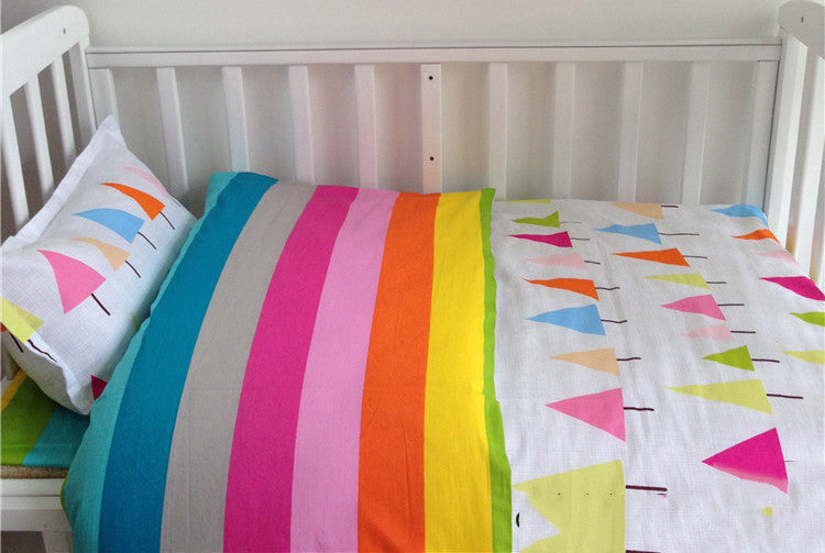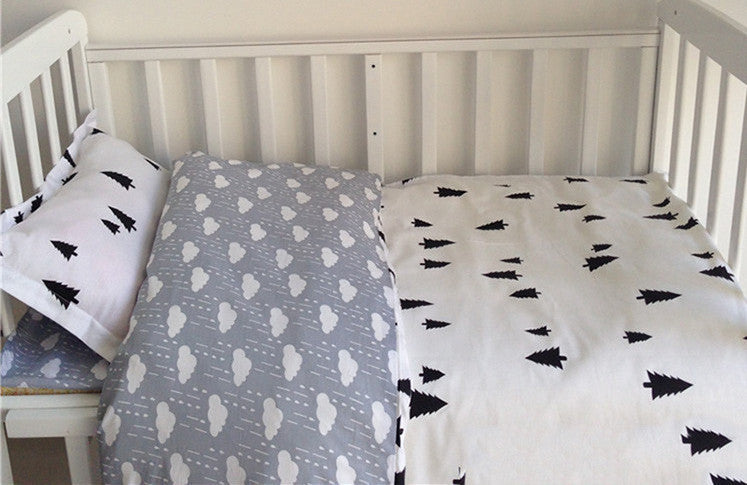 Allow your child to sleep on comfortable cozy beddings with the pillowcase bed sheet cover. Get the 3-piece cotton crib set today. |