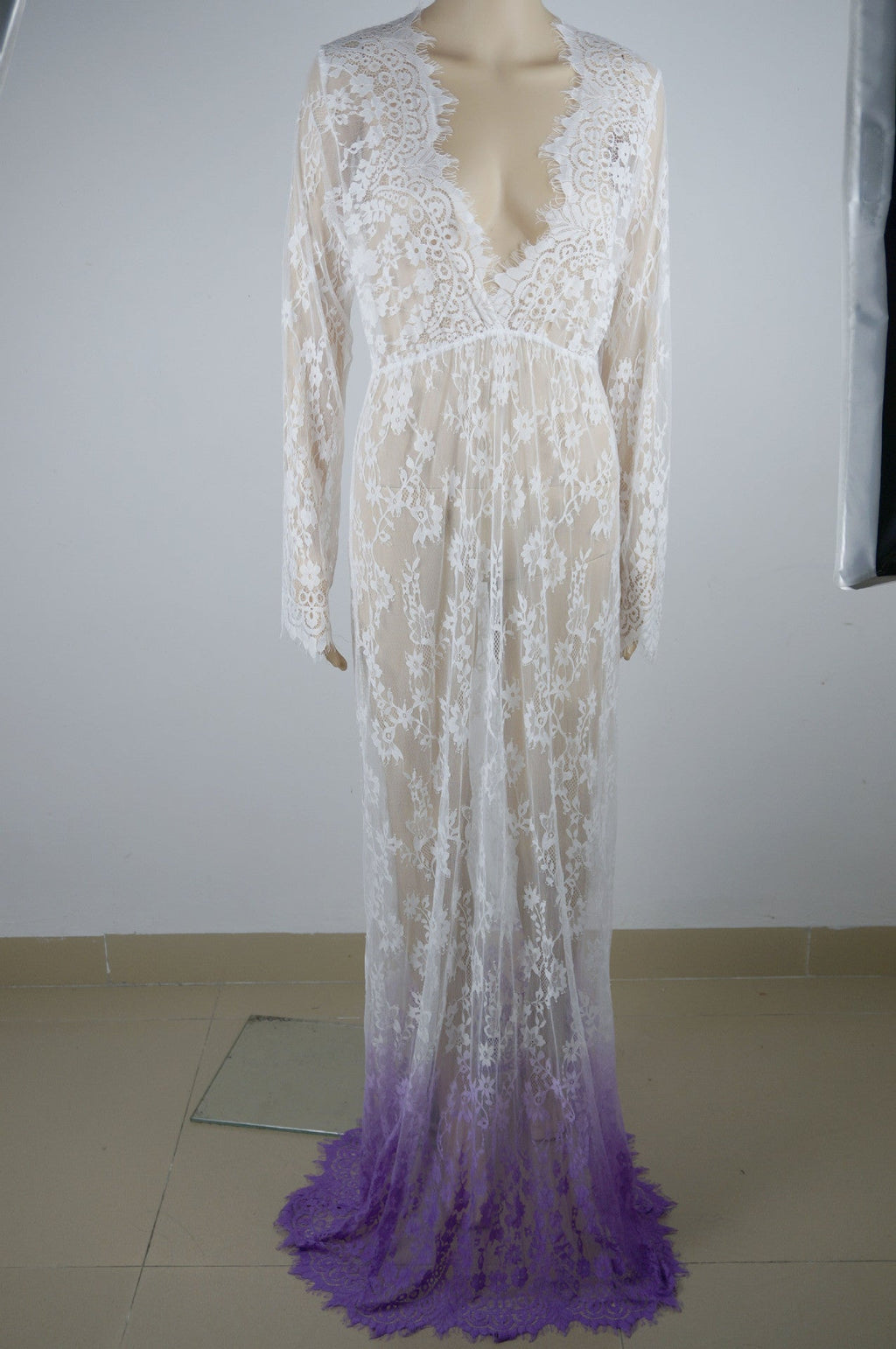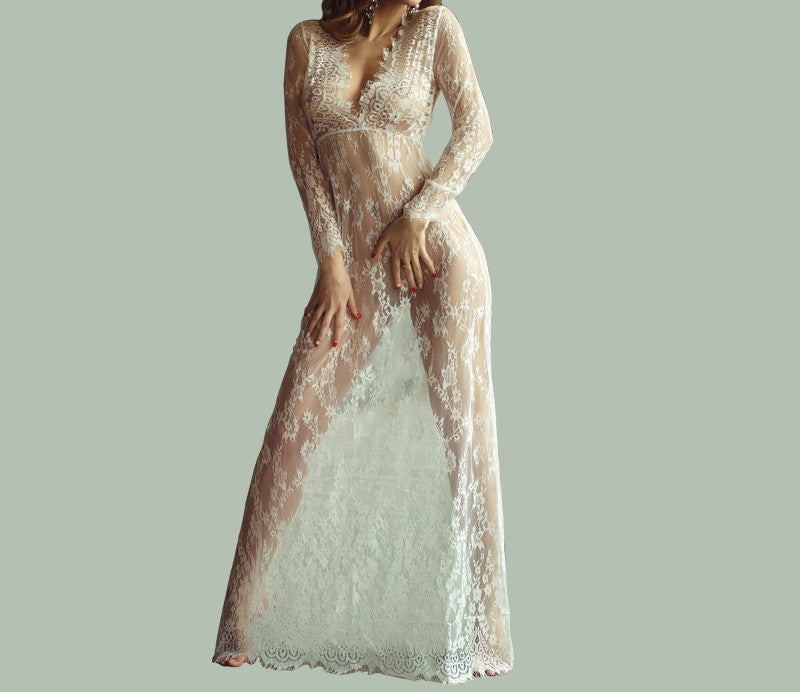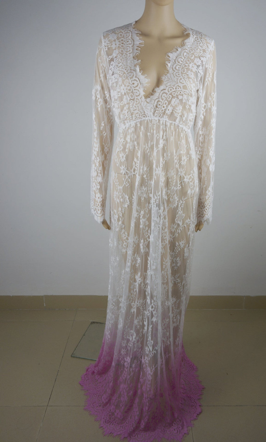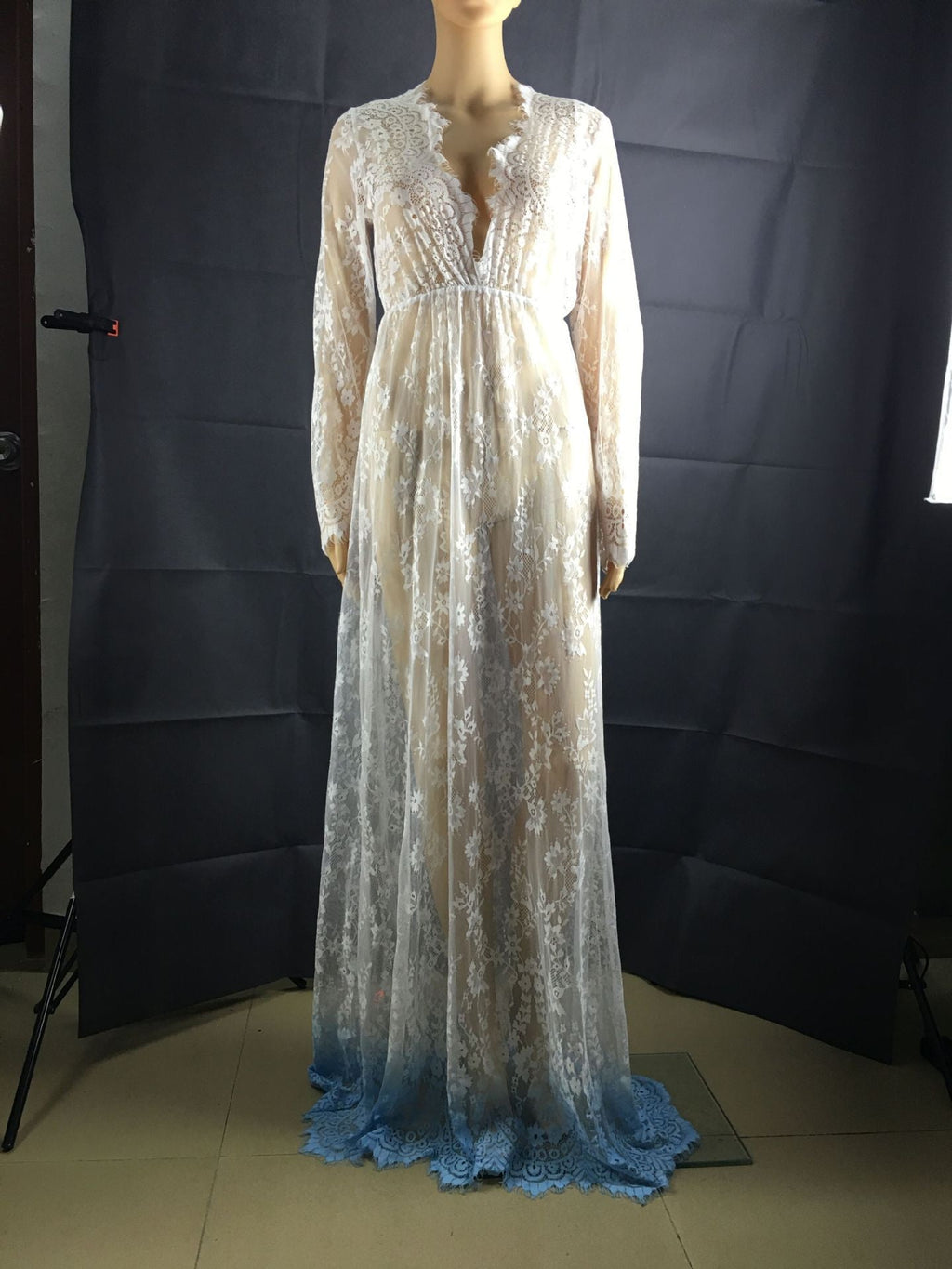 Crafted from high-quality polyester and adorned with exquisite lace detail, this dress embodies a luxe yet comfortable feel. The flowing silhouette offers a loose and relaxed fit, allowing you to move with ease while showcasing your curves. The full-length sleeves add modesty and charm, while the v-neckline subtly highlights your collarbone, giving you an alluring look.