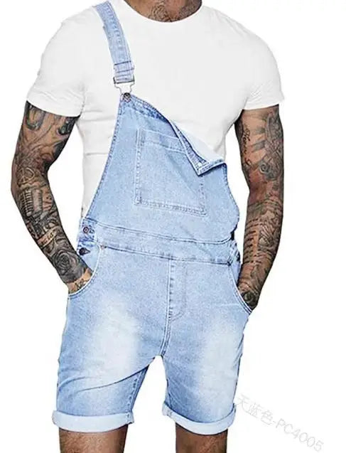 Take your style to the next level with these Men's Jeans Rompers Overalls. Designed for risk-takers, these wide leg pants feature a distressed look, knee-length design, and plenty of pockets for convenience. Embrace the summer in style with these unique and bold one-piece jumpsuits.