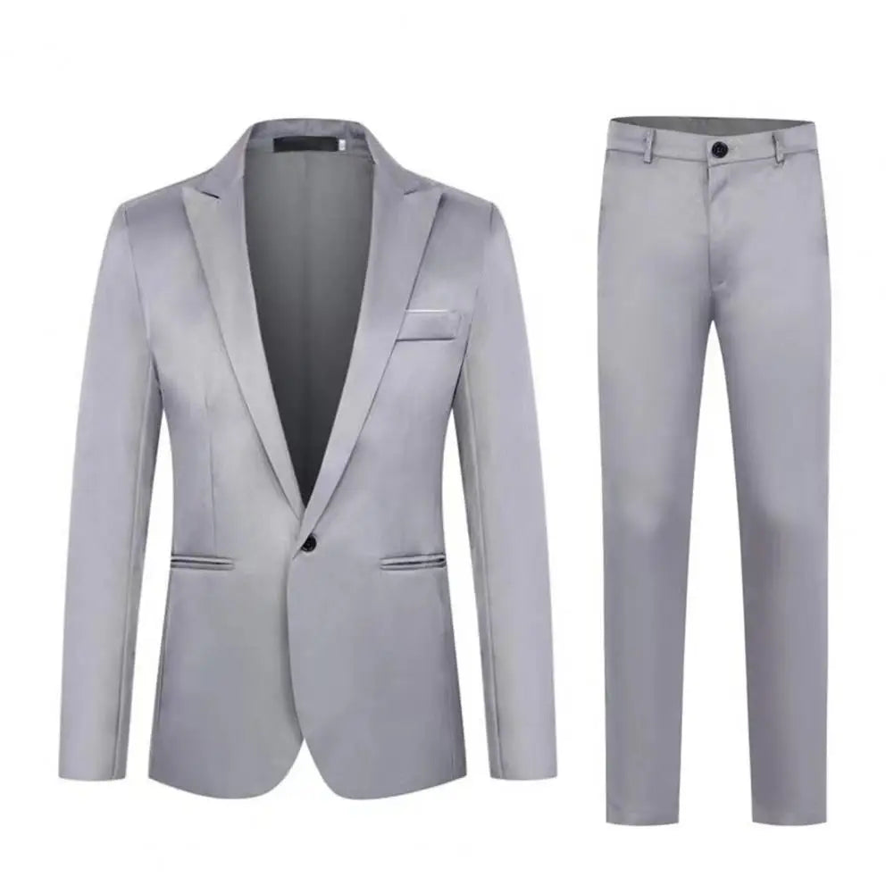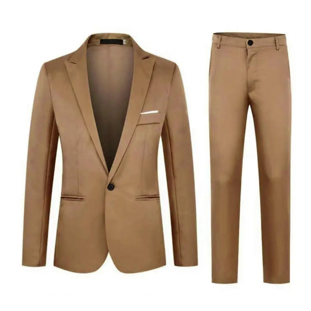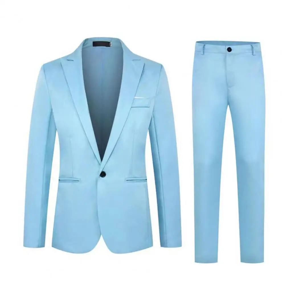 This Men Slim Fit Pants Set Men's Slim Fit Business Suit Set with Single Button Long Pants Spring Autumn Solid Color Lapel Design is not just a clothing choice; it's an investment in your personal style. The combination of contemporary design and functionality means you can wear it for various occasions—business meetings, weddings, or a night out with friends. Stand out from the crowd and make a lasting impression with this sophisticated suit set.