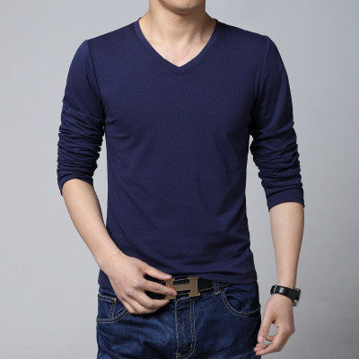 Upgrade your wardrobe with the Men's fashion Spring and Autumn Slim-type long-sleeved T-shirt Pure cotton casual V-neck men's large size X-5XL and experience the perfect combination of comfort, style, and versatility.