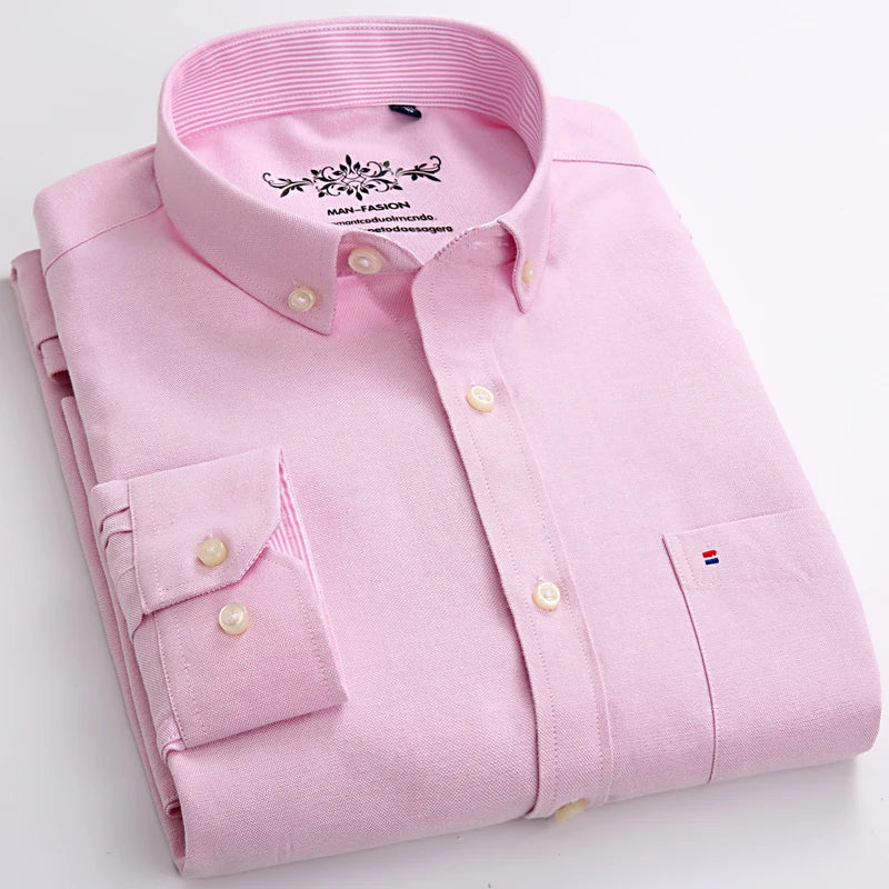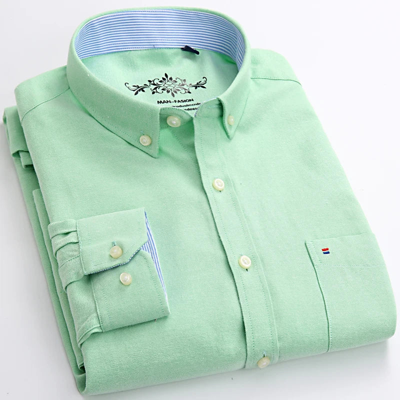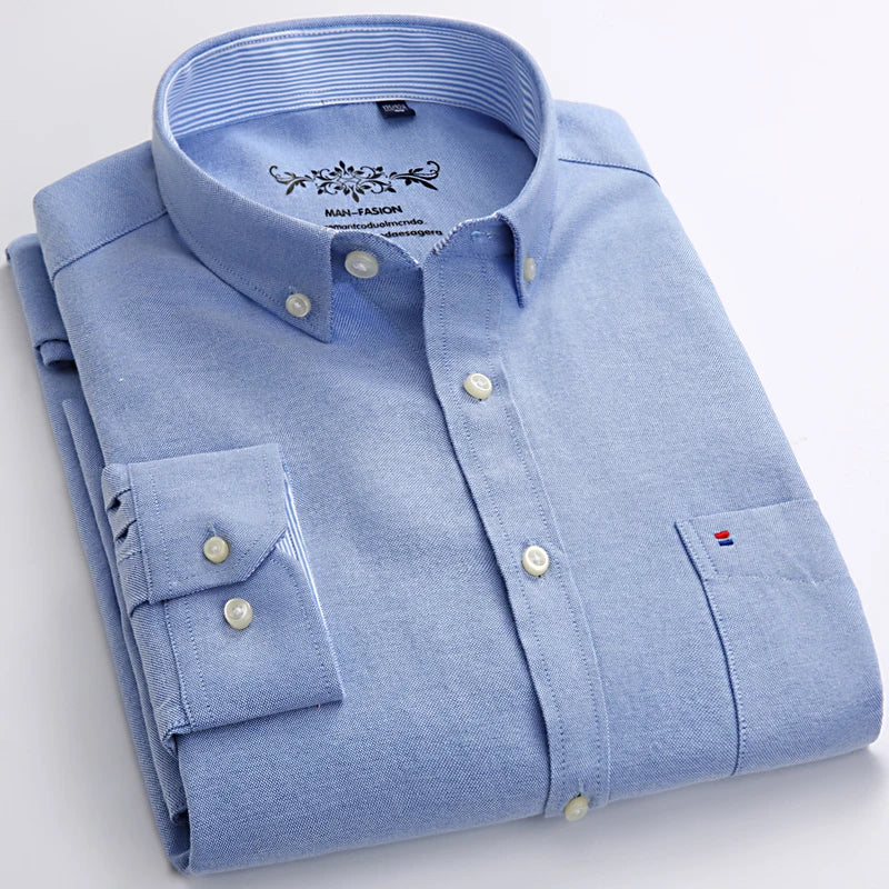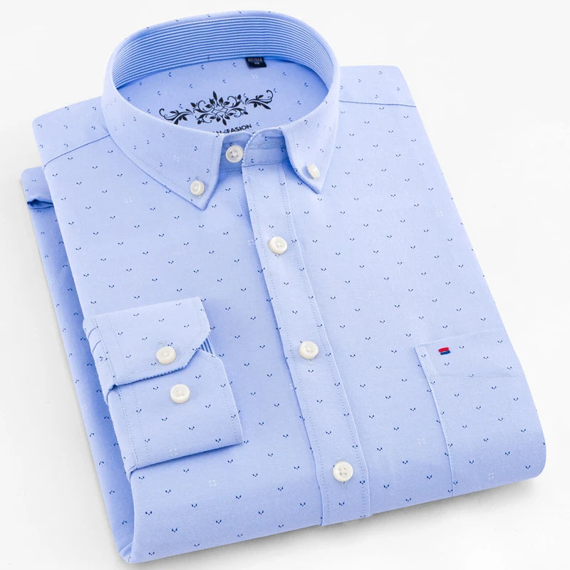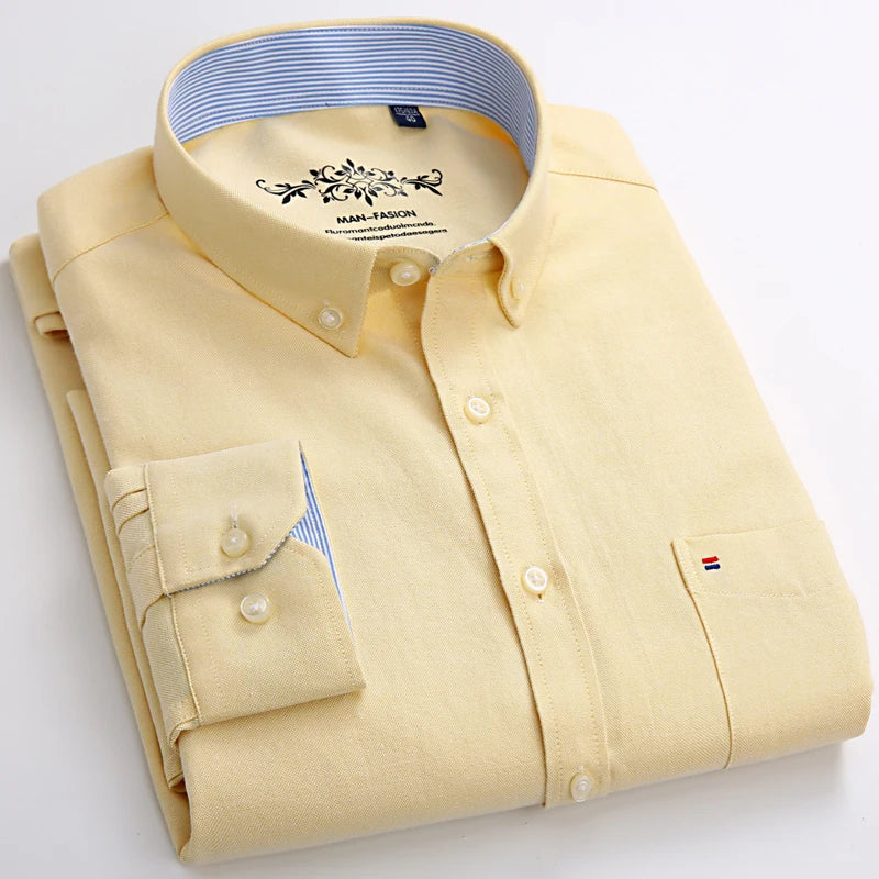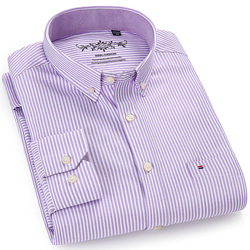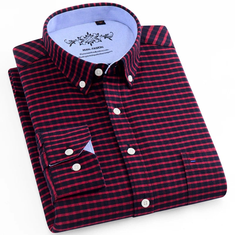 Elevate your wardrobe with the Men's Long Sleeve Oxford Plaid Striped Casual Shirt Front Patch Chest Pocket Regular-fit Button-down Collar Thick Work Shirts—a versatile piece that combines functionality with timeless style.