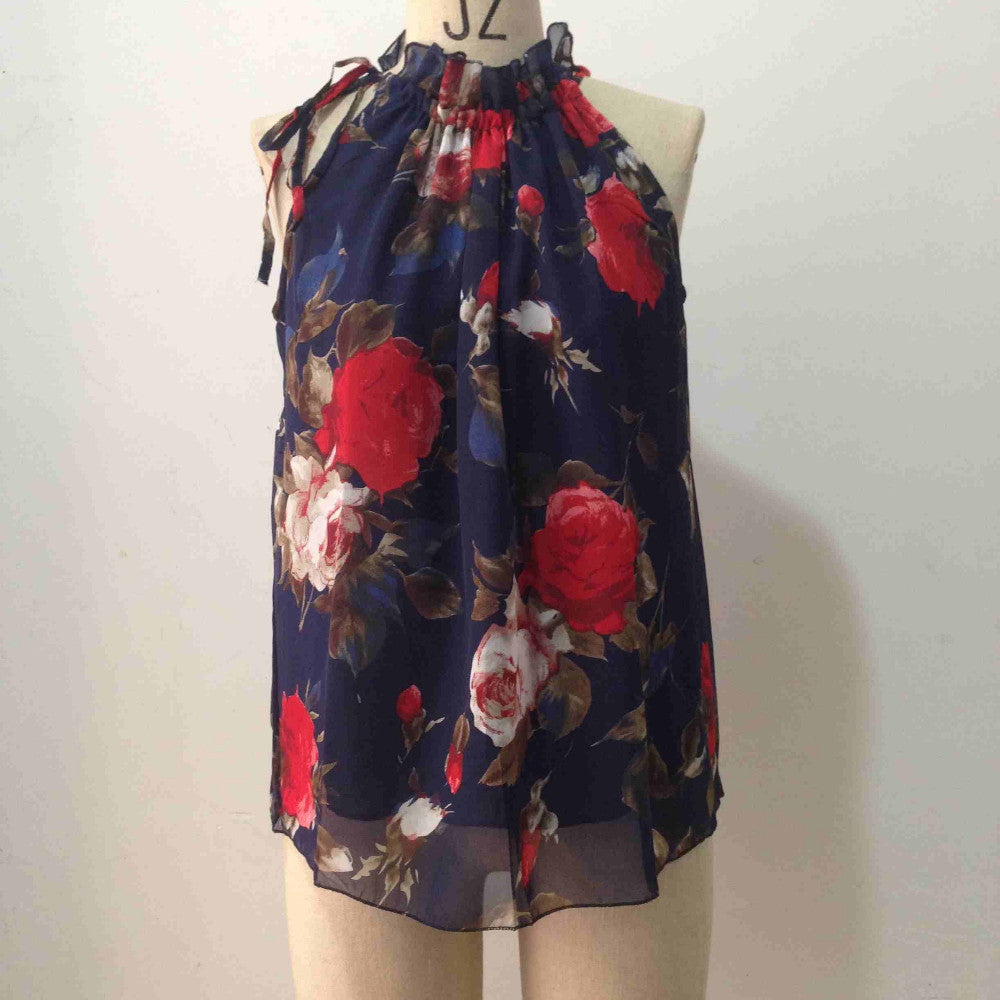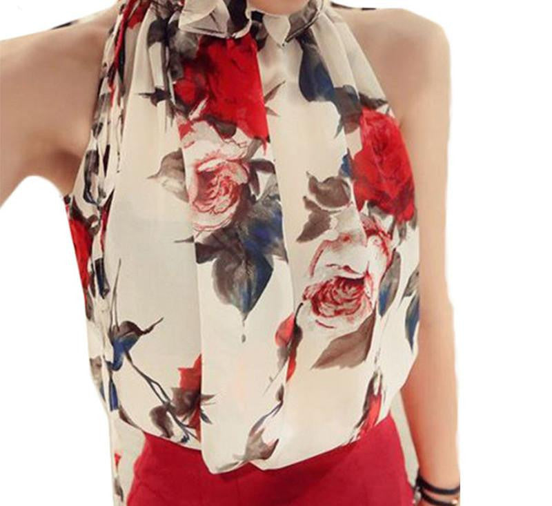 Upgrade your summer style with the Women Sleeveless Chiffon Floral Print Blouse Ruffles Turtleneck Tops Shirt T57334. Order now and enjoy a blend of comfort and elegance!