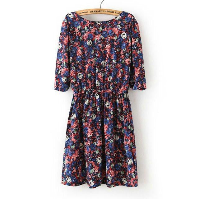 Get the beautiful floral v-neck dress into your closet this summer. That's a line knee length piece comes in half sleeve and is available to you. Look comfortable and stylish this summer.