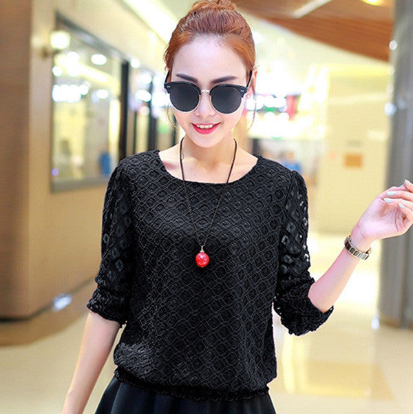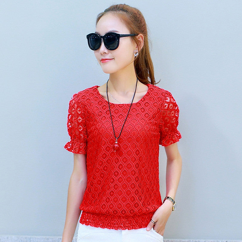 Featuring delicate lace detailing, these short-sleeved blouses bring a touch of elegance to your everyday look. The hollow-out design adds a unique flair, setting you apart from the crowd. The solid pattern makes it easy to pair with any bottom, from jeans to skirts.