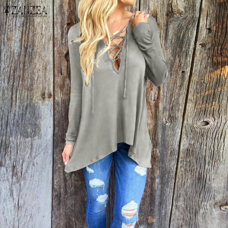 Crafted with a flattering V-neck, this blouse showcases your collarbone while providing a relaxed fit. The long sleeves offer warmth and coverage, making it suitable for transitional weather. The solid color design allows for easy pairing with jeans, skirts, or shorts.