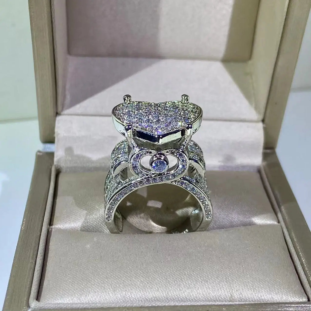 Experience true luxury with our Silver Exquisite Big Heart Ring. Made with 5A CZ Micro Pave Cubic Zirconia, this fully iced out bling is perfect for those who like to take risks and make a bold statement. Ideal for both men and women who want to add some punk and hip hop vibes to their style. Live your life unapologetically with this exquisite ring!