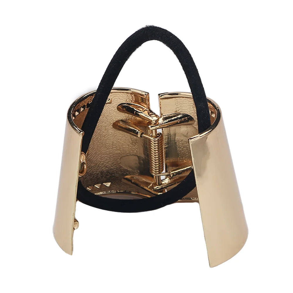 The Women Punk Gothic Fake Metal Hair Cuff Ponytail Clip Tie Holder Hair Band Elastic Wrap Hair Accessories is not just a hair tie; it’s a statement piece. It enhances your look while providing functionality, making it a must-have for any fashion-forward woman. Add this standout accessory to your collection and embrace the punk aesthetic!