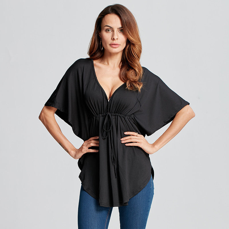 Introducing our stunning Women Blouses Casual Loose Blouse V-Neck Batwing Sleeve Tee Tops Solid Black Shirts Plus Size XS-5XL, designed to elevate your wardrobe with effortless style and comfort. This versatile blouse is perfect for any casual outing or relaxed day at home, offering a blend of fashion and functionality that suits every woman.