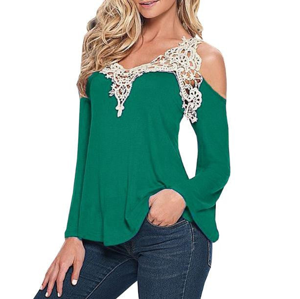 The Women Long Sleeve V-Neck Blouse features a trendy off-shoulder design that adds a touch of sophistication and flair. Its V-neck collar enhances your neckline, while the full flare sleeves provide a chic and elegant silhouette. Available in solid colors, this blouse is versatile enough to pair with your favorite jeans, skirts, or shorts.