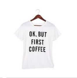 style 1: new fashion summer OK BUT FIRST COFFEE T Shirts Printed Letter Tops