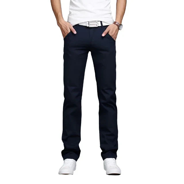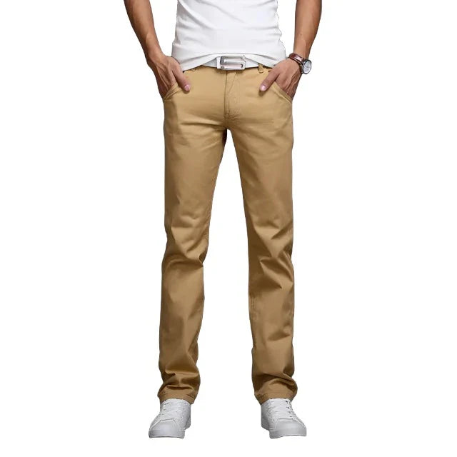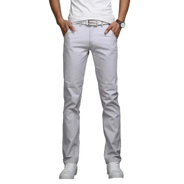 Looking for a stylish and comfortable pair of pants for spring and summer? Look no further! Our Casual Men pants are made with high-quality cotton for a slim and straight fit. Upgrade your wardrobe with these fashionable trousers that are perfect for any occasion.