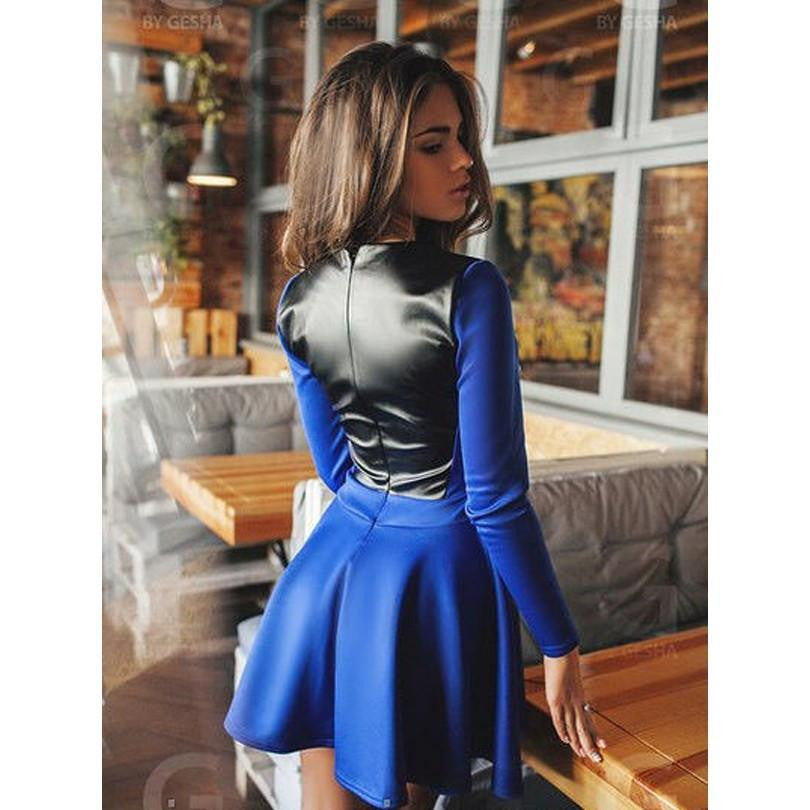 Elevate your wardrobe with the Women Dress Long Sleeve Dress Autumn Winter Women Casual Patchwork Dress with PU A-line dress. This stunning dress seamlessly blends style and comfort, making it the perfect addition to your autumn and winter collection. Featuring a chic patchwork design and crafted from high-quality materials, this A-line dress offers a flattering silhouette that suits all body types.