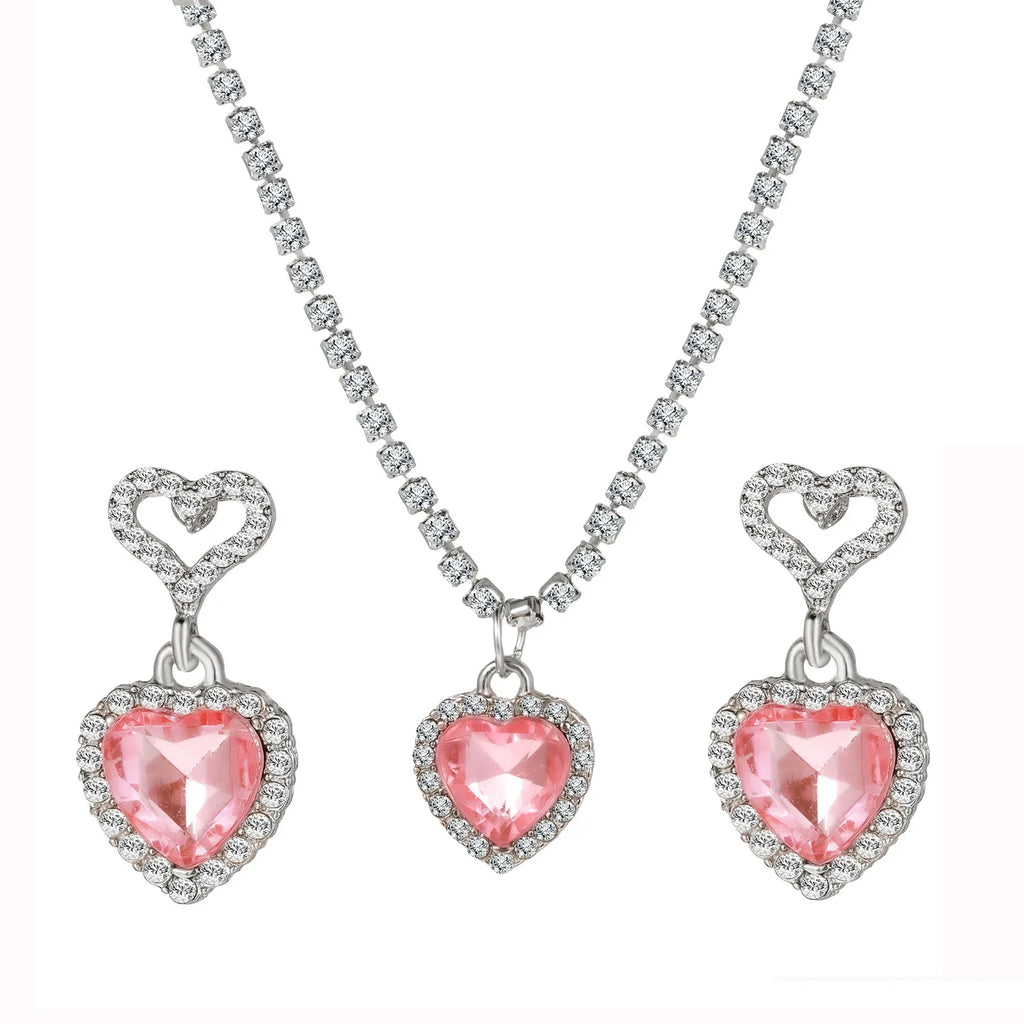 Unleash your daring side with our exclusive Earrings Necklaces Set for Women! Featuring chic, Heart-shaped Zircon Pink Crystal Pendant Necklaces, these earrings add a touch of elegance to any outfit. Perfect for bold and adventurous women, these exquisite earrings make for a unique and stylish gift. Don't miss out on this one-of-a-kind accessory!