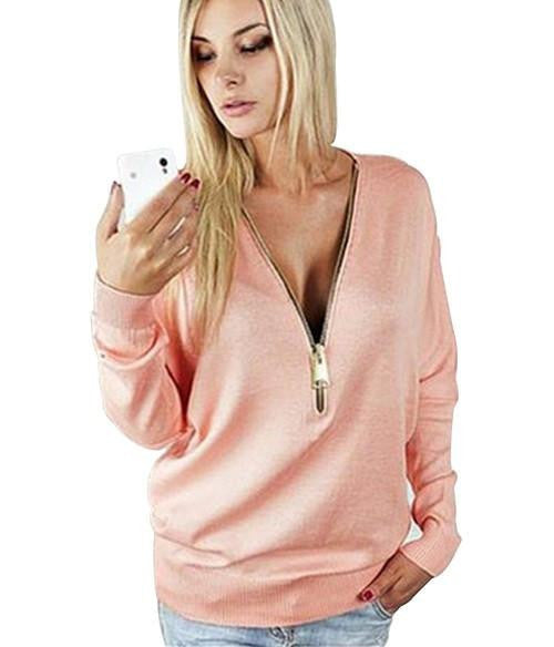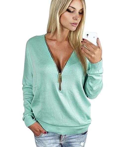 Upgrade your style game with this women casual T-shirt long sleeve deep v-neck sexy female tee tops solid color with zippers woman basic shirts. Shop now and enjoy the perfect blend of fashion and function!