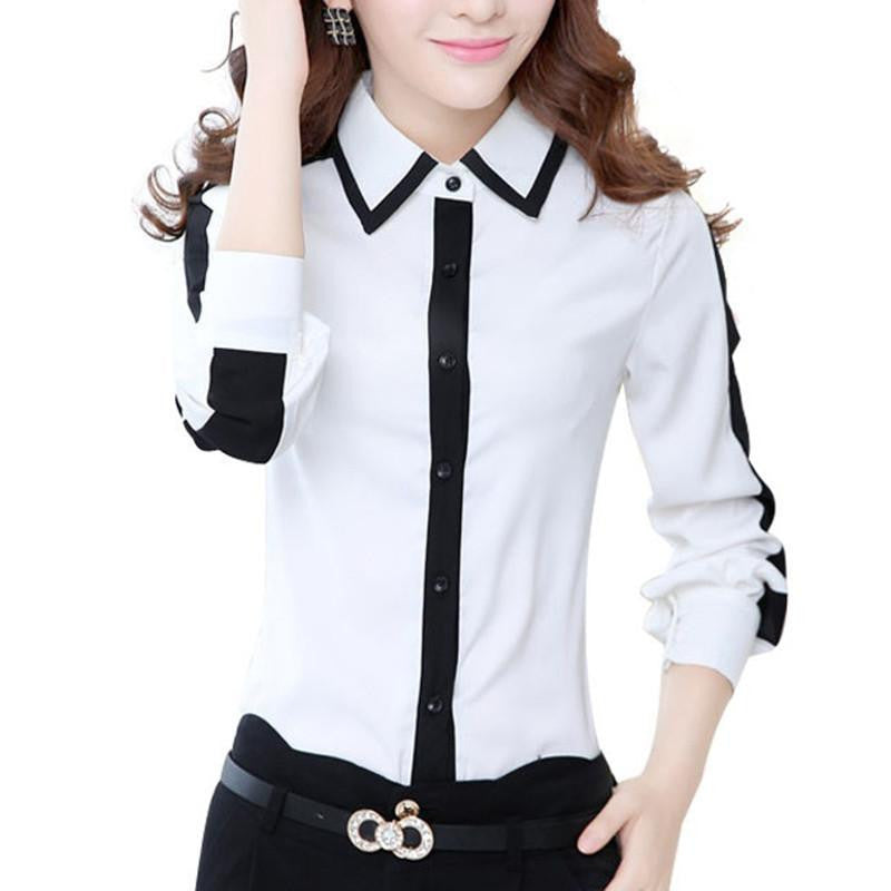 Discover the ultimate addition to your wardrobe with our Women Chiffon Blouses Style Long Sleeve Casual Patchwork Buttons Black And White Shirt Women Tops. This stylish and versatile blouse perfectly combines comfort and elegance, making it an essential piece for any fashion-forward woman. Designed with a chic patchwork pattern, this blouse is ideal for both casual outings and formal occasions.