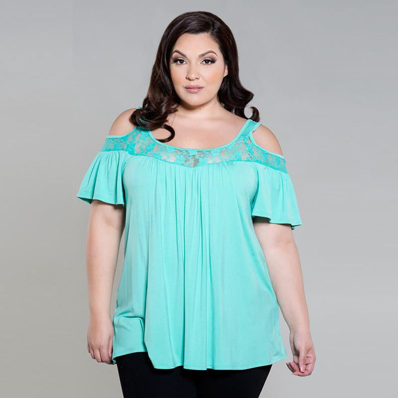 Our Women Off Shoulder Tops Short Sleeve Lace Patchwork Loose Casual Plus Size Women Blouses Shirt 5XL 6XL is not just a piece of clothing; it's an expression of personal style. Wear it with confidence and stand out in any crowd. Don’t miss out on this must-have addition to your wardrobe!