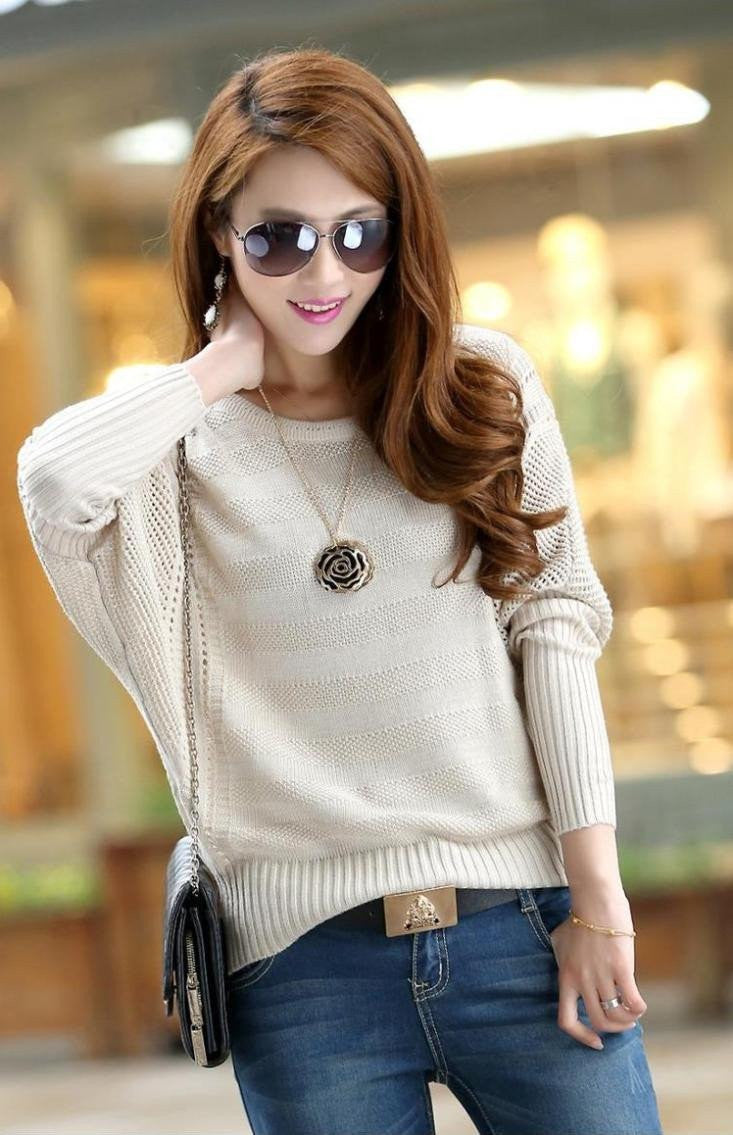 This batwing pullover sweater is casual and comes with a full length sleeve. This flat method sweater is solid and very comfortable.