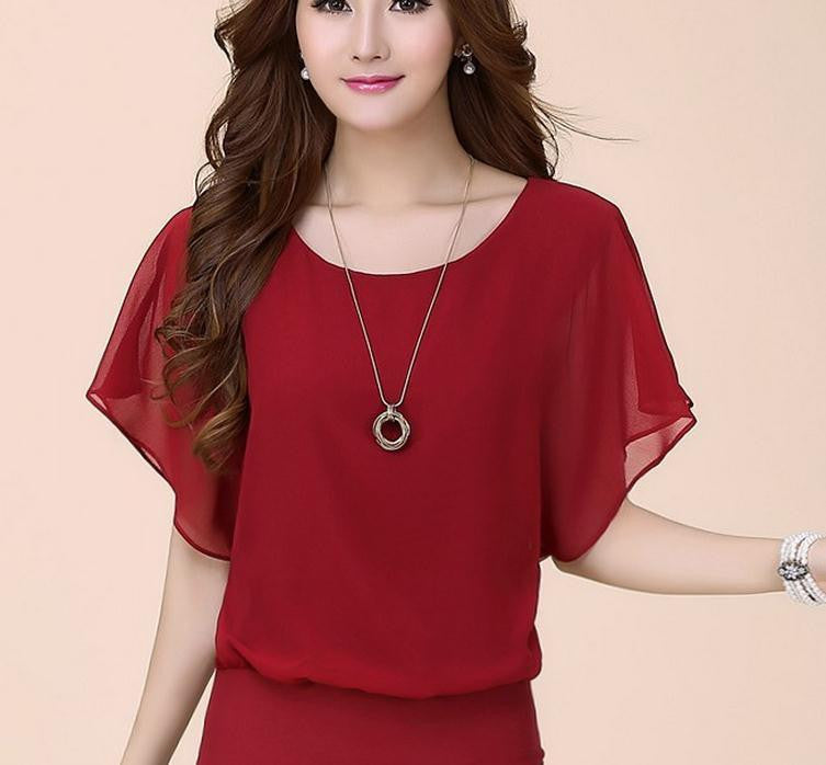 This Women's Short-sleeve Top Ladies Chiffon Blouses Shirts Female Elegant Batwing Plus size Casual is not just about looks; it is designed for comfort too. Whether you're running errands, meeting friends, or heading to the office, this top will keep you feeling relaxed and stylish. Pair it with your favorite jeans or a skirt for an effortlessly chic look.