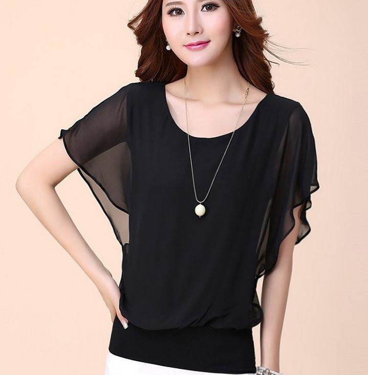 Don't miss the opportunity to elevate your wardrobe with this essential piece. Add the Women's Short-sleeve Top Ladies Chiffon Blouses Shirts Female Elegant Batwing Plus size Casual to your cart today and experience the perfect blend of elegance and comfort.