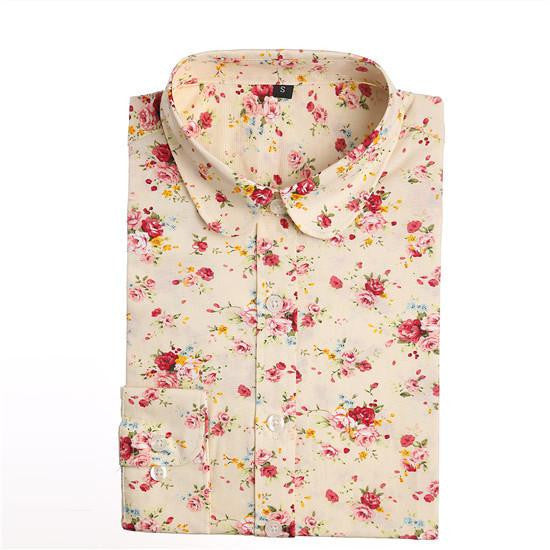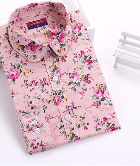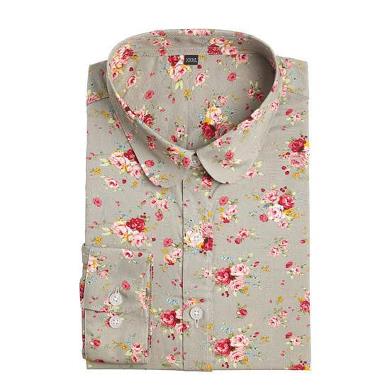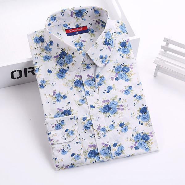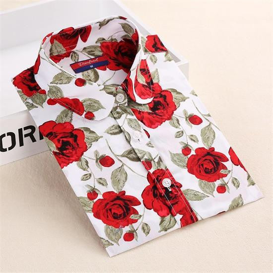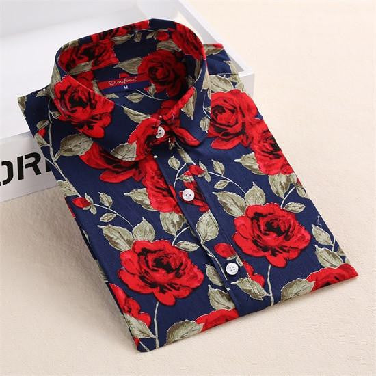 Crafted from high-quality materials, this blouse features a beautiful floral pattern that captures the essence of casual elegance. The turn-down collar and button decoration add a sophisticated touch, making it suitable for various occasions, from casual outings to semi-formal events.