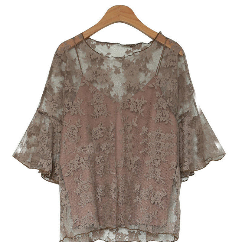 Don't miss out on this stylish addition to your closet. Invest in this fashion Women O-Neck Tops wild small tape embroidered chiffon blouse Crochet lace Two-piece Trumpet sleeves today and redefine your unique style!