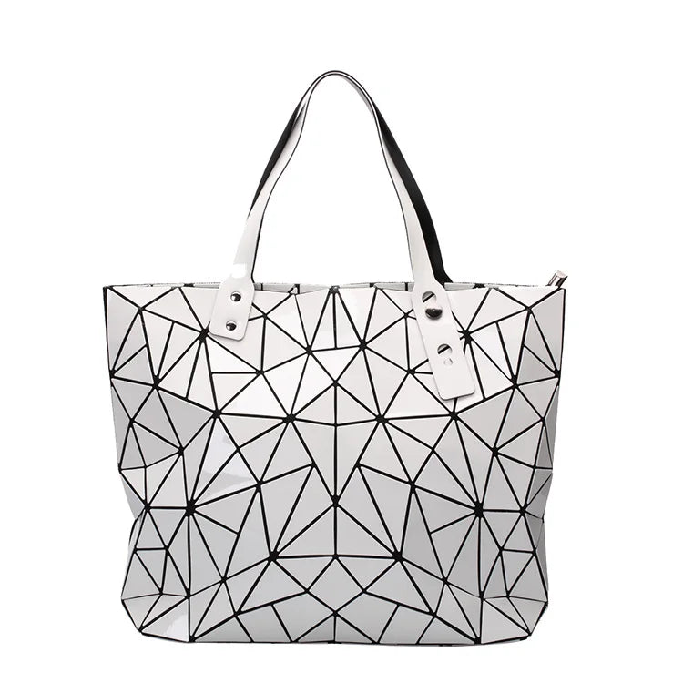 This Luxury handbags women bags designer Beach Large tote Hologram Shoulder Bag is designed for the fashion-forward individual who appreciates both aesthetics and practicality. Whether you're heading to the beach, a shopping spree, or a casual brunch, this handbag complements any outfit. The geometric criss-cross pattern adds a modern touch, ensuring you stay chic.