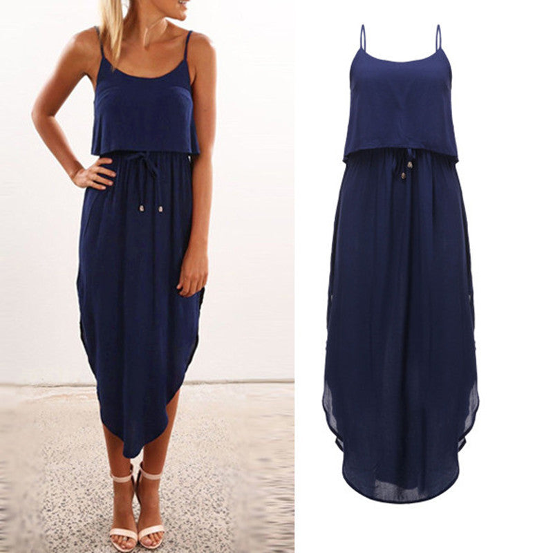 This Summer Dress Womens Sleeveless Split Irregular Hem Party Dresses Straps Backless Beach Sundress Vestidos is not just a dress; it's an expression of your personality. Whether you're heading to a beach party or a backyard barbecue, this sundress will ensure you look fabulous and feel confident. Available in various sizes, it's designed with an empire waistline for a flattering silhouette that complements all body types. Don't miss out on this summer essential; contact us for detailed sizing information and step out in style today!