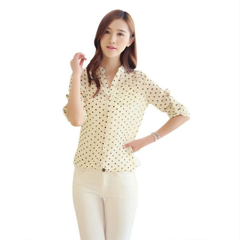 Available in sizes S-XL, this casual blouse ensures a comfortable fit for every woman. The lightweight chiffon fabric drapes beautifully, allowing for ease of movement while keeping you cool during warmer months. Pair it with jeans for a laid-back look or dress it up with a skirt for a more polished appearance.