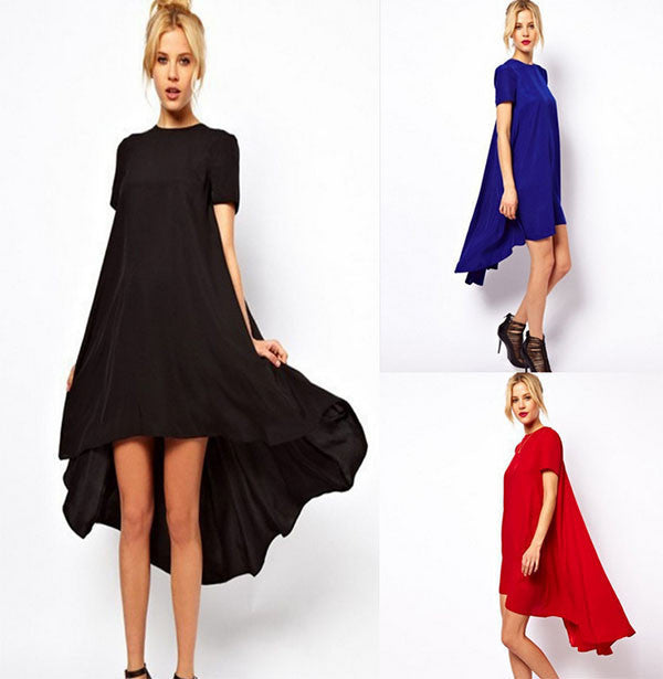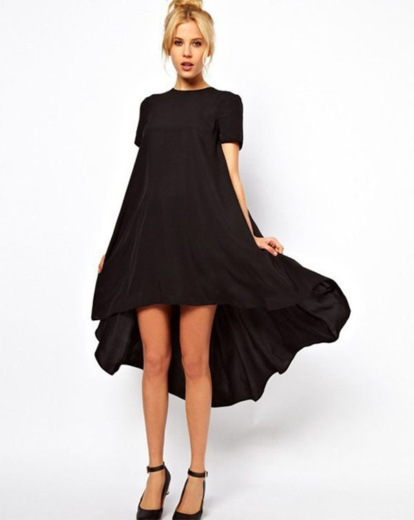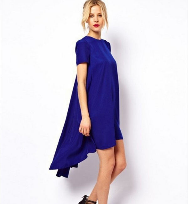 This beautiful high low dress with regular sleeve and around neckline is totally yours. This beautiful loose dress is convenient classy and chic.
